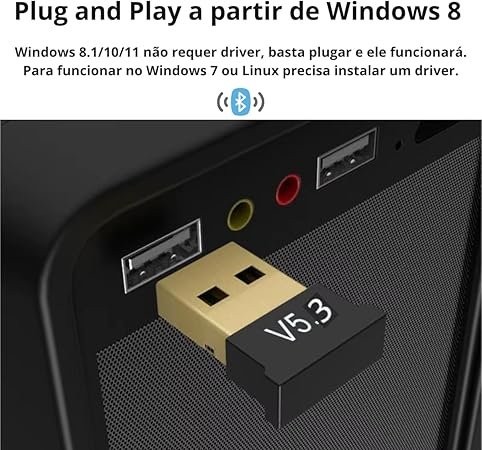 Com um adaptador Plug & Play, a configuração é rápida e descomplicada, ideal para quem não quer perder tempo com processos técnicos. Além disso, essa opção reduz o risco de incompatibilidades, tornando a conexão com fones de ouvido, teclados, mouses e outros acessórios Bluetooth muito mais simples.