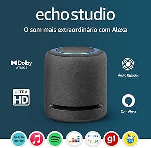 - Echo Studio: A escolha perfeita para quem quer som premium. Com áudio imersivo, o Echo Studio é ótimo para quem gosta de ouvir músicas em alta qualidade e deseja uma Alexa que combine com seu sistema de som.