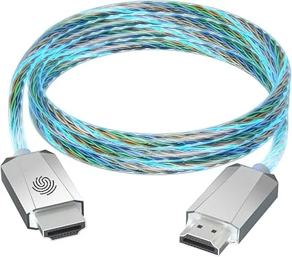 O JOYJOM Cabo HDMI 4K vai além de ser apenas um cabo comum: ele une desempenho avançado com um visual diferenciado graças à sua iluminação RGB com controle de toque. Com um simples toque no conector HDMI, é possível alternar entre sete cores em modo de ciclo ou escolher uma das seis opções fixas, trazendo personalidade ao setup. Essa característica o torna ideal para quem monta ambientes gamers, setups de streaming ou simplesmente deseja dar um toque moderno e estiloso à sua estação de trabalho.