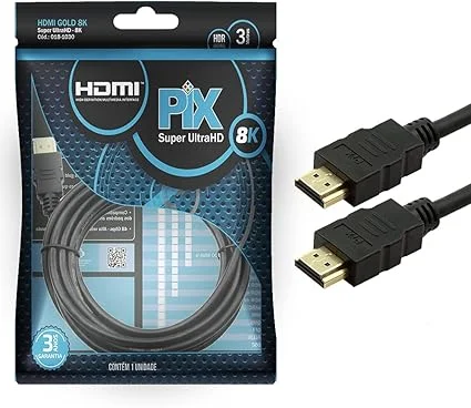 O design do PIX HDMI Gold 2.1 alia robustez e confiabilidade, garantindo conexões seguras e duráveis. Ele é perfeito para televisores modernos, sistemas de home theater, consoles de última geração e equipamentos multimídia, oferecendo praticidade e desempenho superior. Se você deseja preparar sua configuração audiovisual para o futuro, com altíssima qualidade de imagem, compatibilidade ampla e transmissão confiável, o PIX Cabo HDMI Gold 2.1 é uma opção sólida e eficiente, capaz de elevar sua experiência de entretenimento a outro nível.