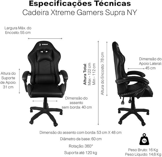 Suporta até 130kg: trará a experiência de uma cadeira firme, robusta e de altíssima durabilidade