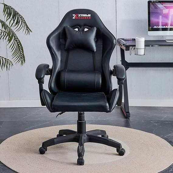 O que permite que você se mova livremente pelo quarto? Certamente é o conjunto de rodízios de alta qualidade que fazem parte desta composição. Além do mais, a cadeira é revestida em Poliuretano (PU) de alta qualidade que é durável, além de também ser fácil de limpar para quem quer praticidade. Por fim, tem um design chamativo e elegante, além de estar disponível na cor preta para combinar com qualquer setup gamer e não suja com facilidade.