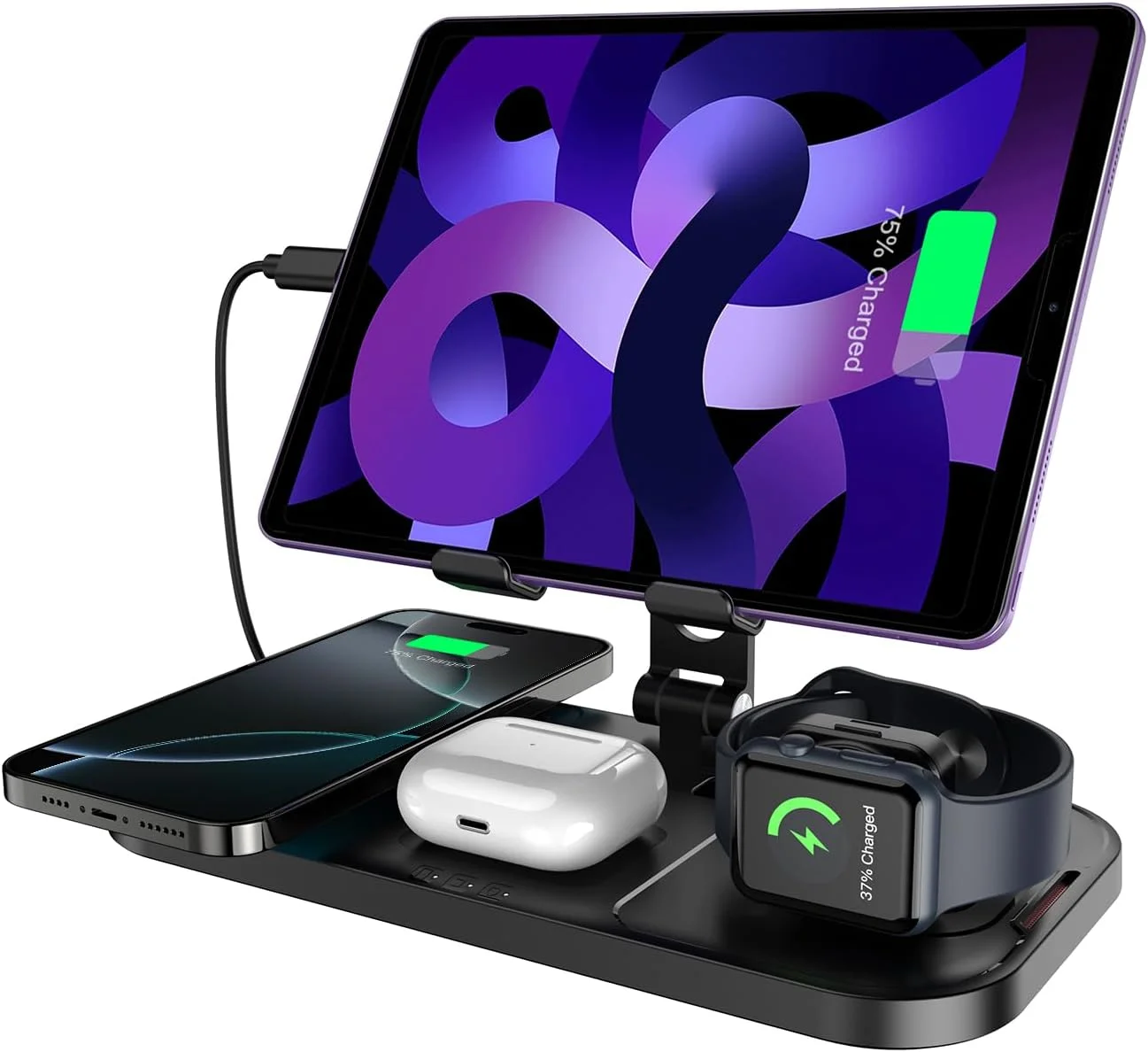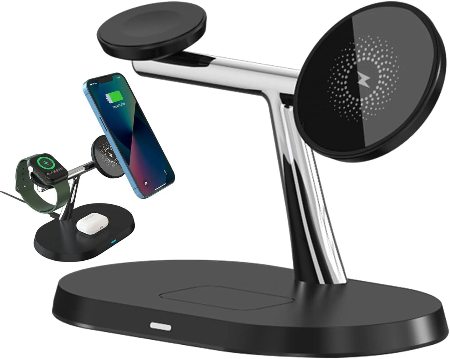 Este carregador por indução vai servir bem para os consumidores que querem um produto potente e moderno. Desse modo, é multifuncional, perfeitamente equipado para todos os telefones celulares padrões, além de demais periféricos como relógio e fone de ouvido, além de uma área de carregamento sem fio padrão.