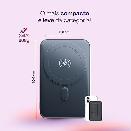 Desse modo, você pode levar na mochila sem maiores problemas. Além disso, temos uma base de carregamento sem fio em que você pode colocá-la em praticamente qualquer lugar quando estiver viajando. Por fim, é compatível com uma ampla gama de dispositivos com certificação Qi para tornar o carregamento fácil e sem complicações.