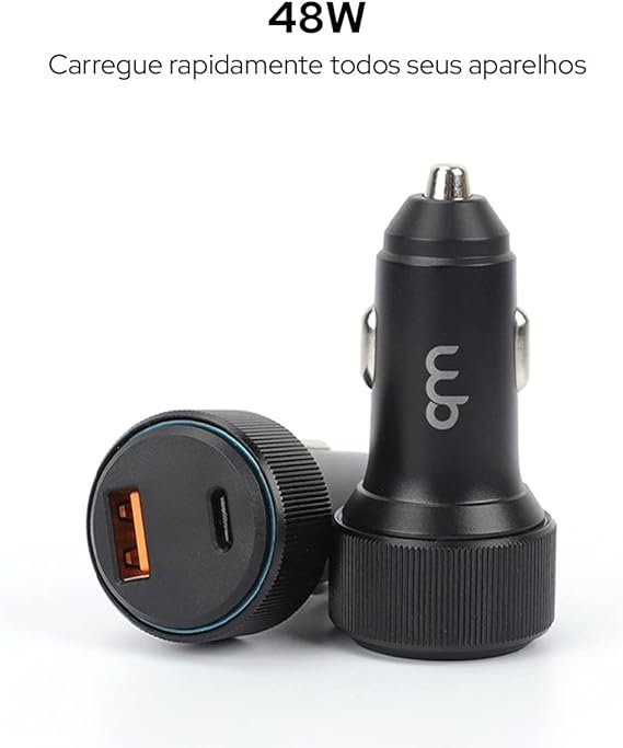 Equipado com duas portas, uma USB tradicional e outra USB-C, esse carregador oferece flexibilidade para diferentes tipos de dispositivos. Essa configuração permite carregar smartphones, tablets e outros eletrônicos, ideal tanto para uso individual quanto para dividir com passageiros durante viagens ou deslocamentos diários. A presença da porta USB-C é relevante, já que ela possibilita maior velocidade de carregamento em aparelhos compatíveis.