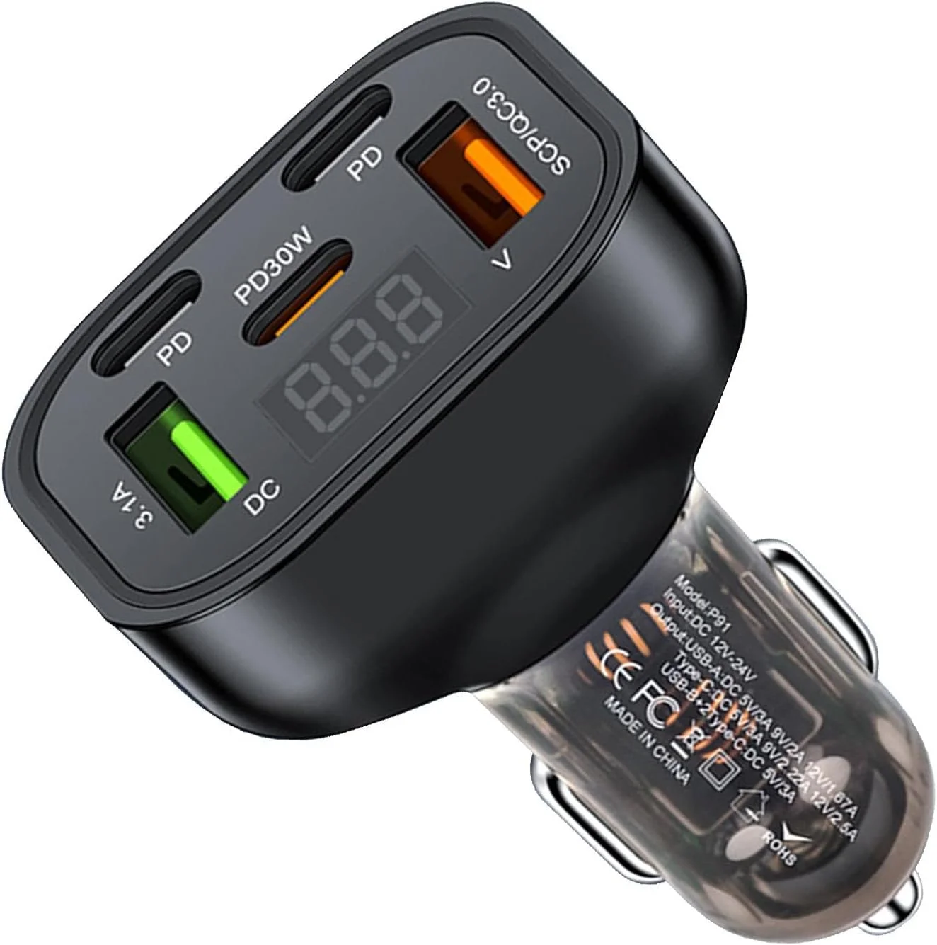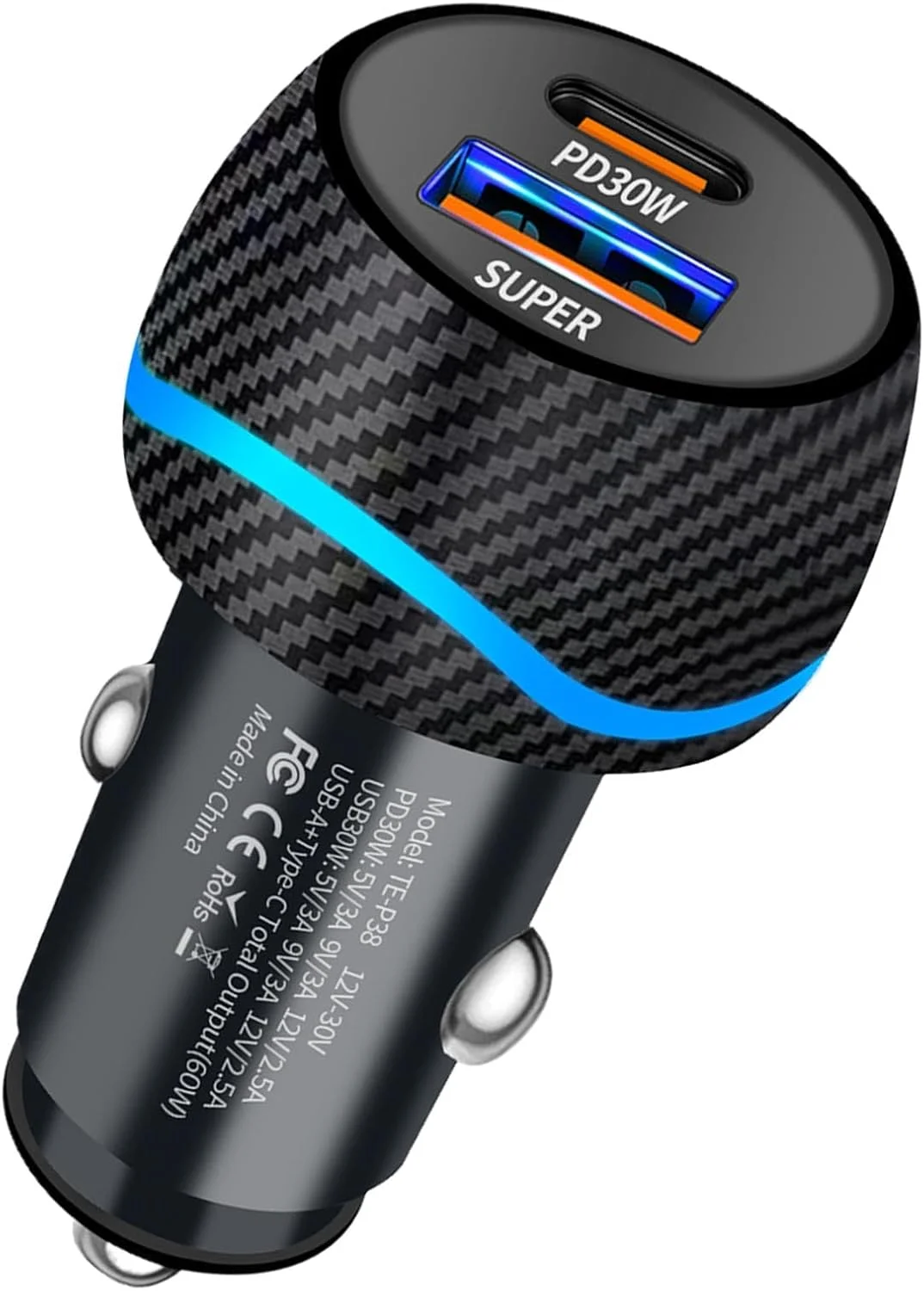 Este carregador veicular é super rápido com 60 W, assim, é uma boa solução para carregamento de diversos eletrônicos. Ao usar o protocolo de carregamento rápido QC+PD30W, este carregador reduz significativamente o tempo de carregamento, garantindo que os dispositivos atinjam a bateria totalmente rapidamente.