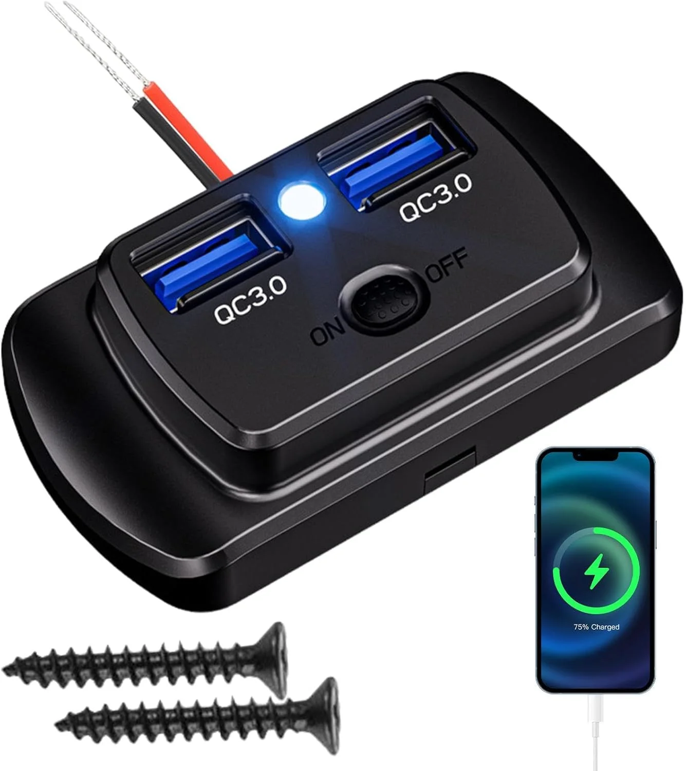 Assim, este carregador veicular garante desempenho estável, protegendo dispositivos contra sobretensão, curtos-circuitos e muito mais. Por fim, é fácil de instalar, pois só é necessário colocar no painel do seu veículo, com isso, este carregador de carro tem um painel oscilante liga-desliga para uso simples.
