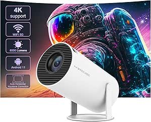 Equipado com Android 11 e Wi-Fi de banda dupla com tecnologia Wi-Fi 6, o Magcubic oferece conexão rápida e estável, permitindo streaming contínuo sem travamentos. Sua resolução nativa 720p Full HD, combinada com suporte a vídeos em 1080p e até 4K, proporciona imagens nítidas e cores vibrantes. O brilho de 8.000 lúmens ANSI e a taxa de contraste de 10.000:1 garantem alta definição mesmo em ambientes com iluminação moderada, resultando em uma qualidade visual impressionante. Além disso, a lente de vidro de três peças proporciona melhor foco e durabilidade, com a lâmpada estimada em até 50.000 horas de vida útil, oferecendo confiabilidade a longo prazo.