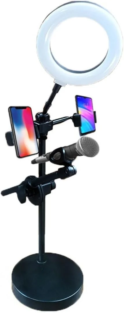 O design do abajur arqueado torna a luz mais uniforme e equilibrada, reduz a estimulação da luz e protege os olhos. Estendendo de 45,7 cm a 160 cm, bases de tripé ponderadas de liga de alumínio para maior estabilidade e evitando tombamento. Já o design de material macio para suporte de celular, permite rotação de 360° que oferece ângulos de visualização infinitos.