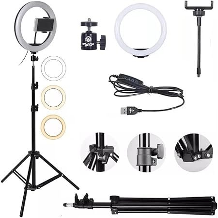 Seu anel de luz LED de 10 polegadas (aproximadamente 26 cm) é projetado para distribuir a luz de maneira uniforme, suavizando sombras e destacando detalhes importantes no rosto ou no objeto fotografado. Essa iluminação balanceada é especialmente útil em ambientes com pouca luz natural ou quando se deseja um visual mais claro e bem definido, algo essencial para vídeos de maquiagem, tutoriais, chamadas de vídeo ou conteúdo para redes sociais.