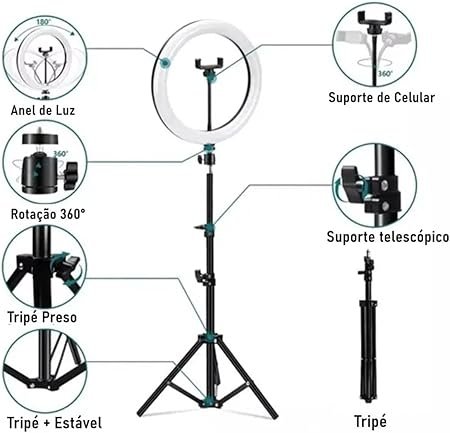 Combinando iluminação de qualidade, versatilidade de posicionamento e facilidade de uso, este anel de luz com tripé é um aliado para quem deseja resultados visuais mais atraentes, com acabamento que valoriza cada detalhe da imagem. Seja para redes sociais, aulas online ou sessões de fotos, ele oferece uma solução acessível e eficaz para aprimorar sua produção audiovisual.