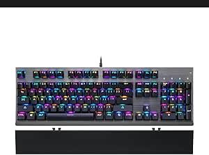 Quanto às luzes, com este modelo você tem até 7 opções de padrão para a iluminação. Também é uma produção grande e ergonômica, ao levar em conta o espaçoso apoio aos pulsos para você usar por muitas horas com menos fadiga muscular.