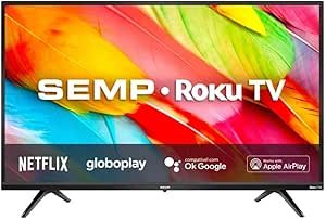 No entanto, os pontos positivos dessa TV não se limitam nas conexões. O sistema Roku também é uma grande vantagem. Rápido e de uso simples, ele garante compatibilidade com assistentes virtuais como Google Assistant e Alexa, te fornecendo um controle mais amplo sobre sua própria TV.